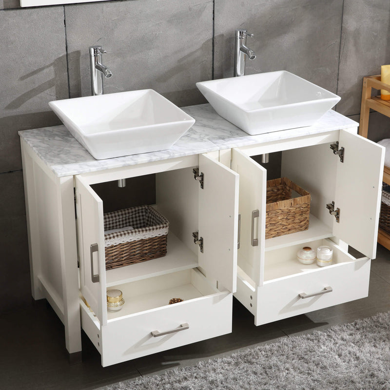 Goodyo® 24" Wood Bathroom Vanity Dark Navy Blue, Marble Top w/ Bowl Sink