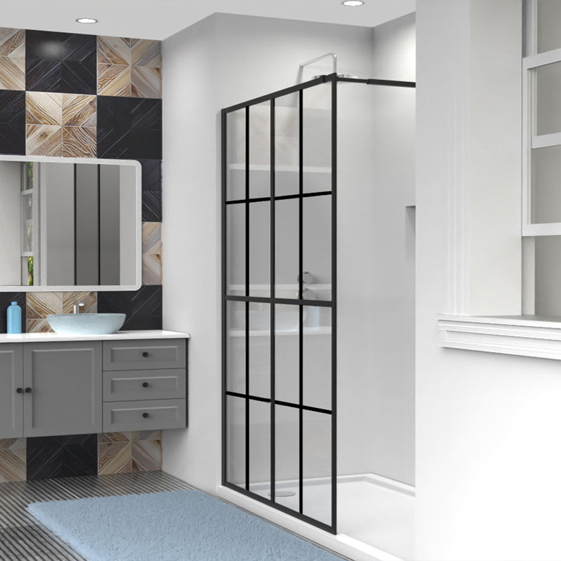 Goodyo® 46 in. W x 72 in. H Bathroom Shower Glass Door Framed Tempered Glass Shower Screen Panel for Walk-in Bathroom, Multiple Grid Pattern, 3-Pieces Glass, Black