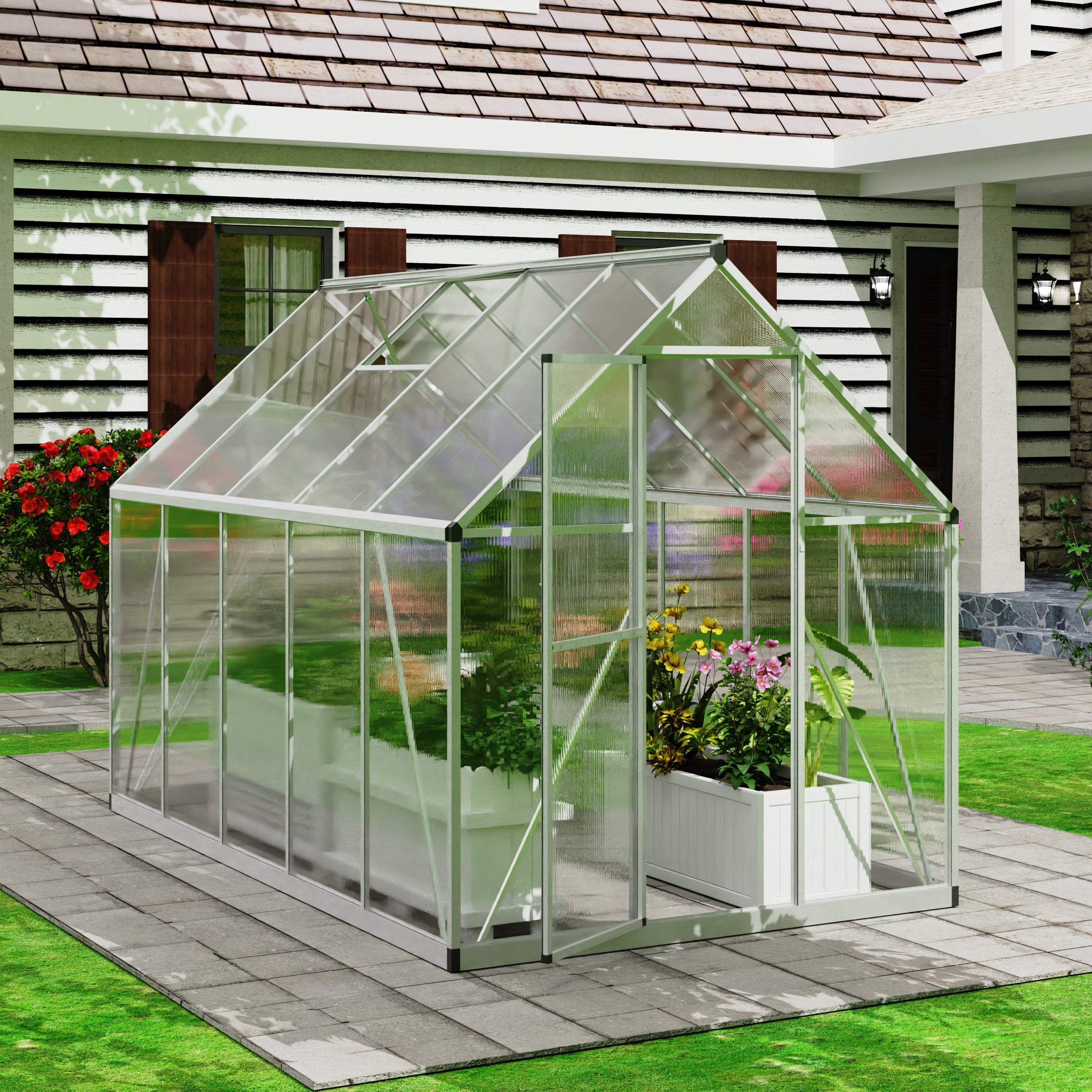 5.54’ x 9.17’ Polycarbonate Greenhouse for Outdoors, Large Aluminum Walk-in Greenhouse with Roof Vent Window & Lockable Door for Garden, Backyards, Easy Assembly, Silver