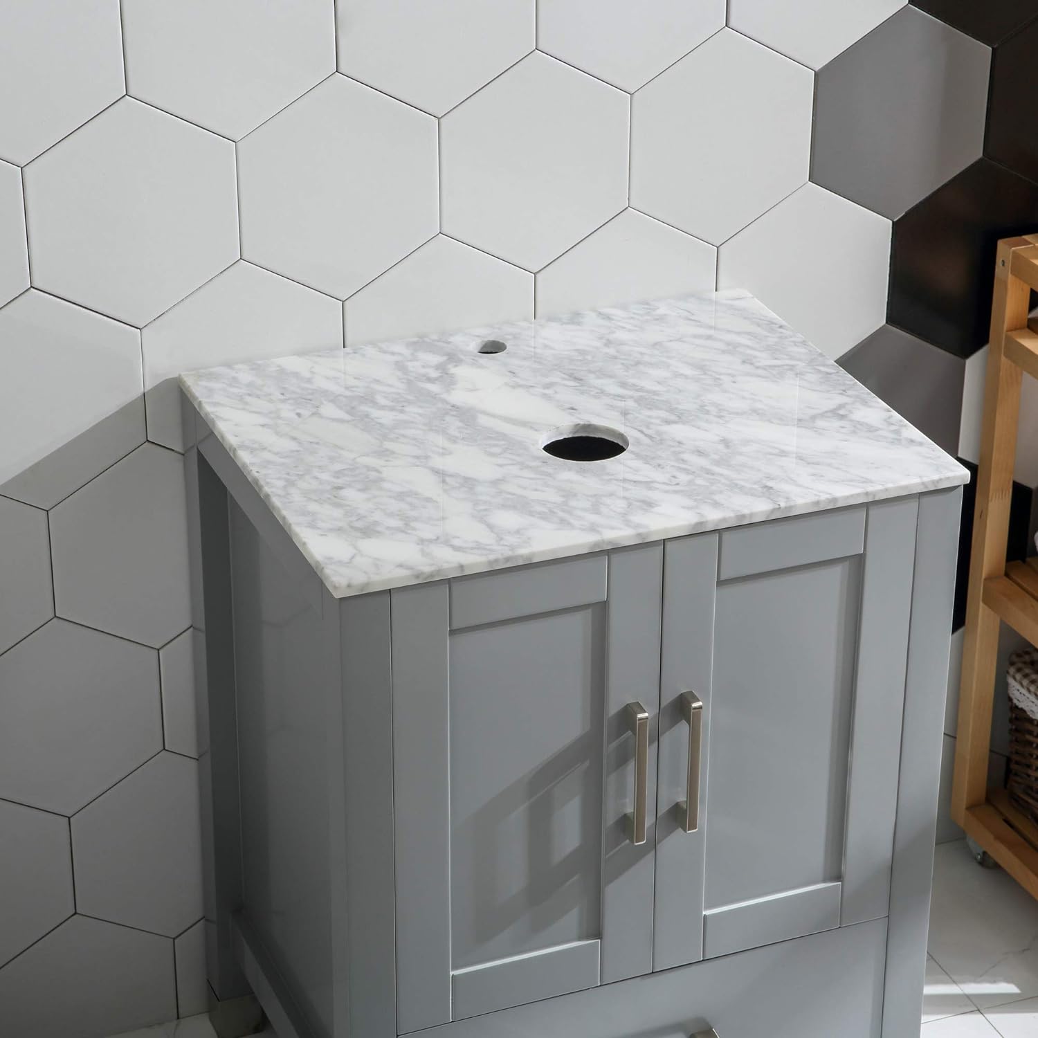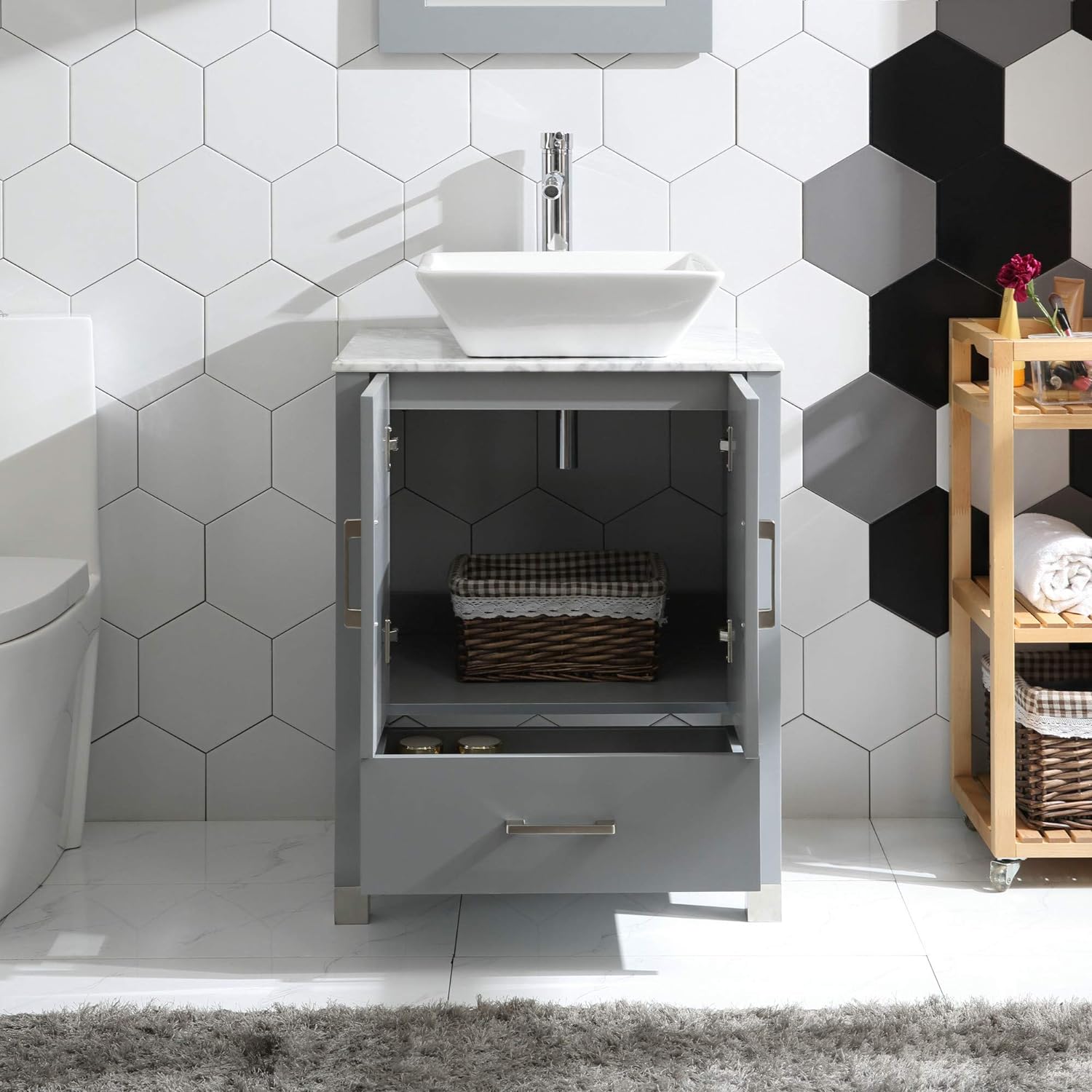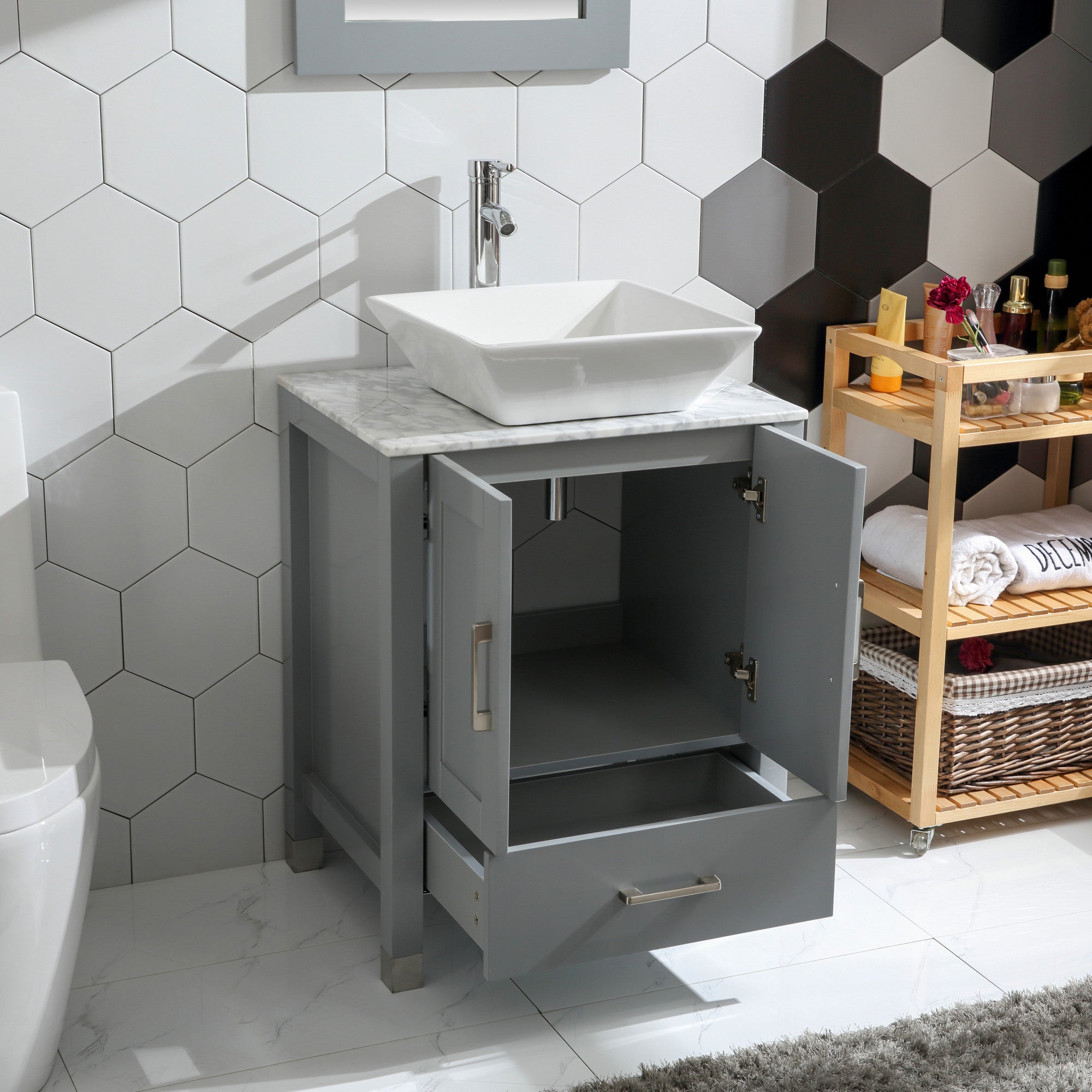 Goodyo® 24” Gray Solid Wood Bathroom Vanity w/ Vessel Sink & Marble Top