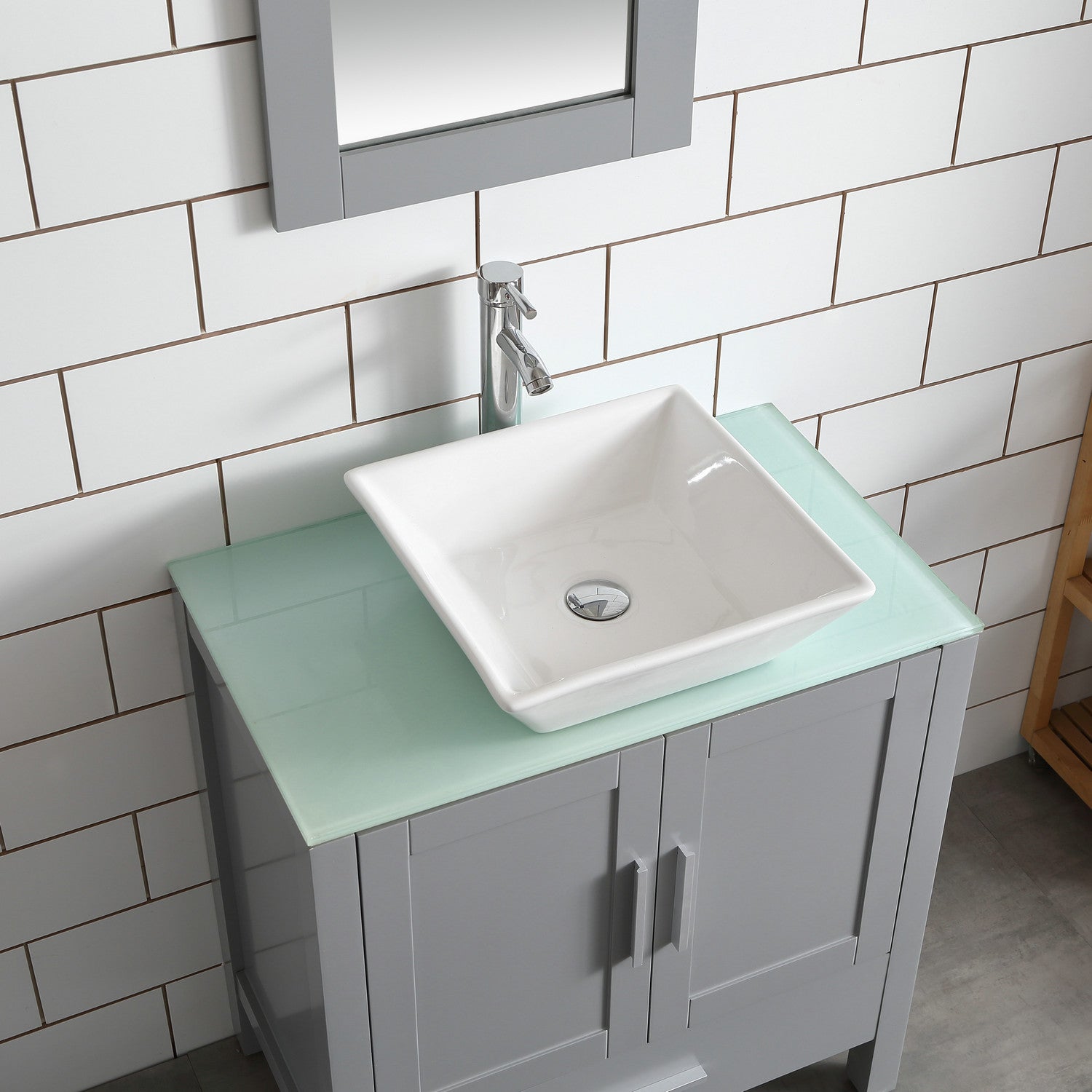 Goodyo® 30" Gray Bathroom Vanity w/ Glass Top, Vessel Sink & Mirror