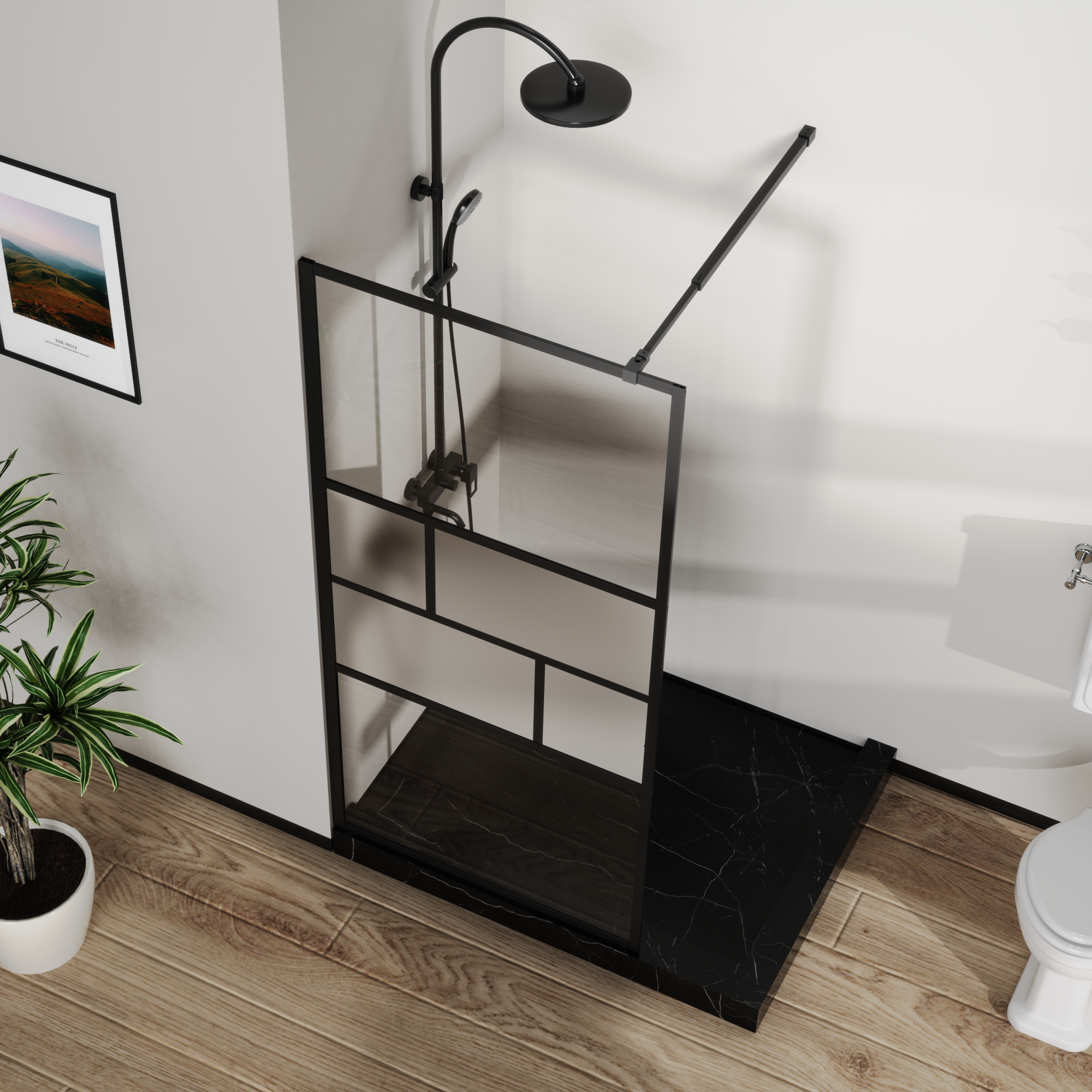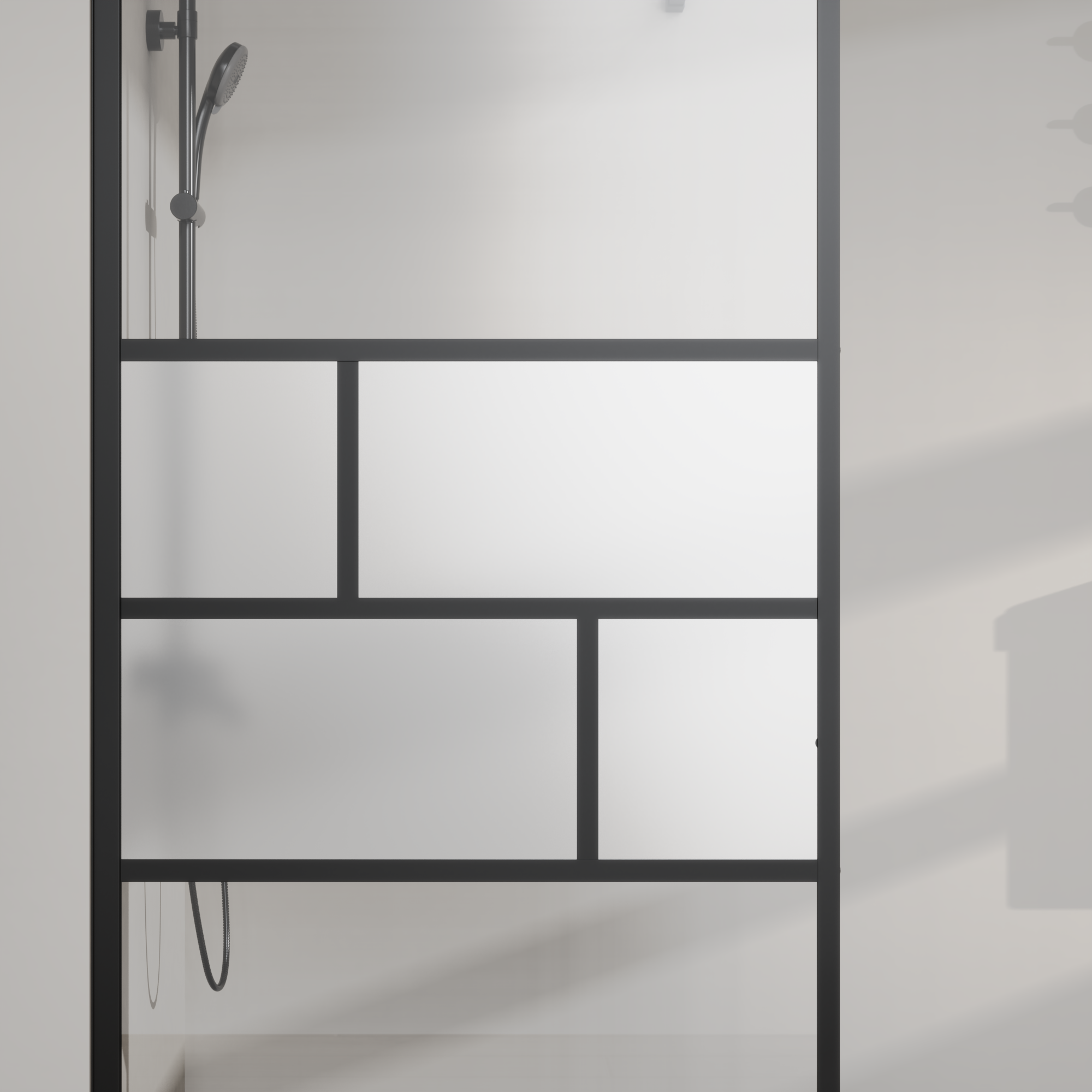 • 【Modern Design】 The black aluminum alloy frame and stylish black grid pattern create a modern and luxury look that complements a variety of bathroom styles, from classic to contemporary. The frosted glass in the middle enhances aesthetics and increases privacy during showers.