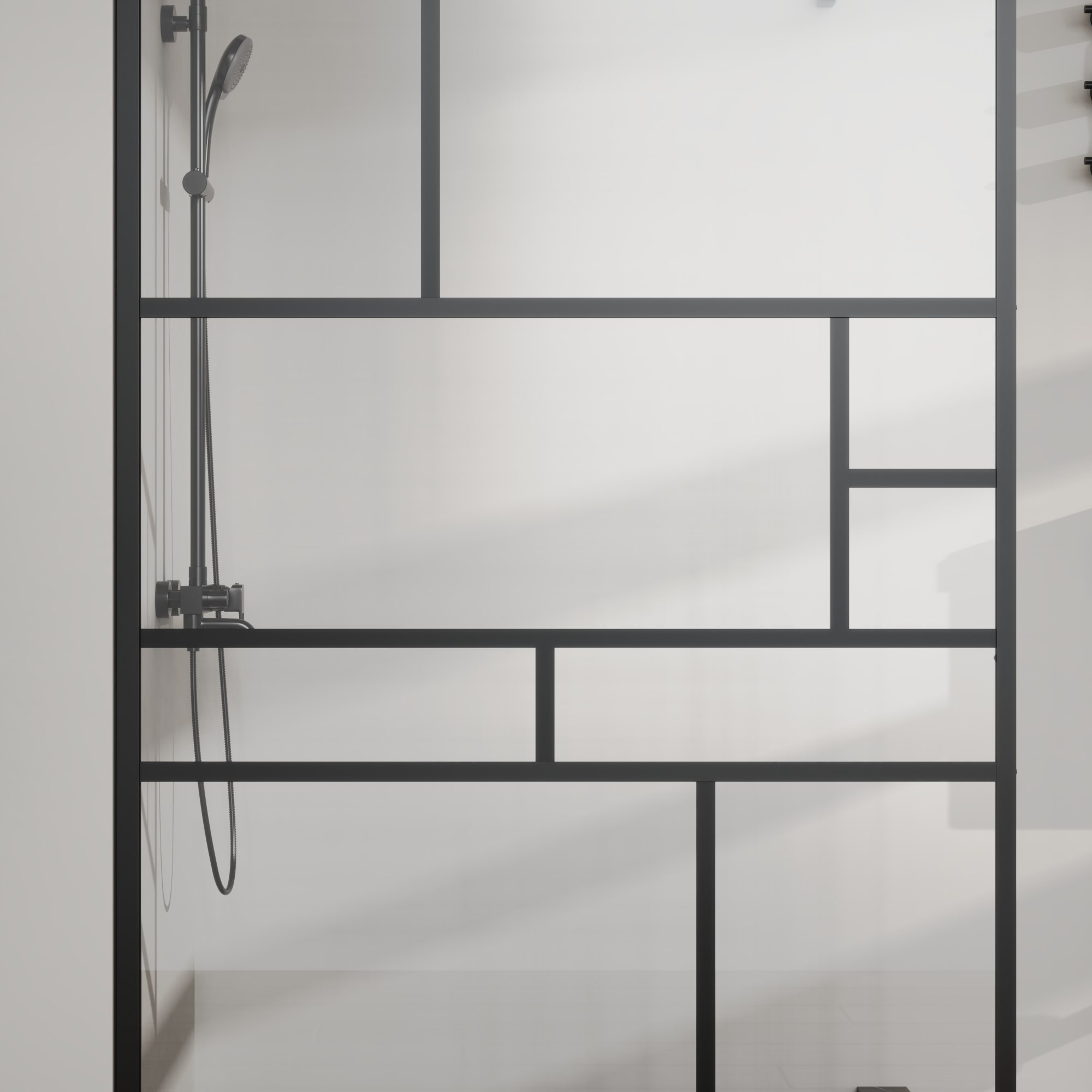 Goodyo® 46 in. W x 72 in. H Bathroom Shower Glass Door Framed Tempered Glass Shower Screen Panel for Walk-in Bathroom, Multiple Grid Pattern, 3-Pieces Glass, Black