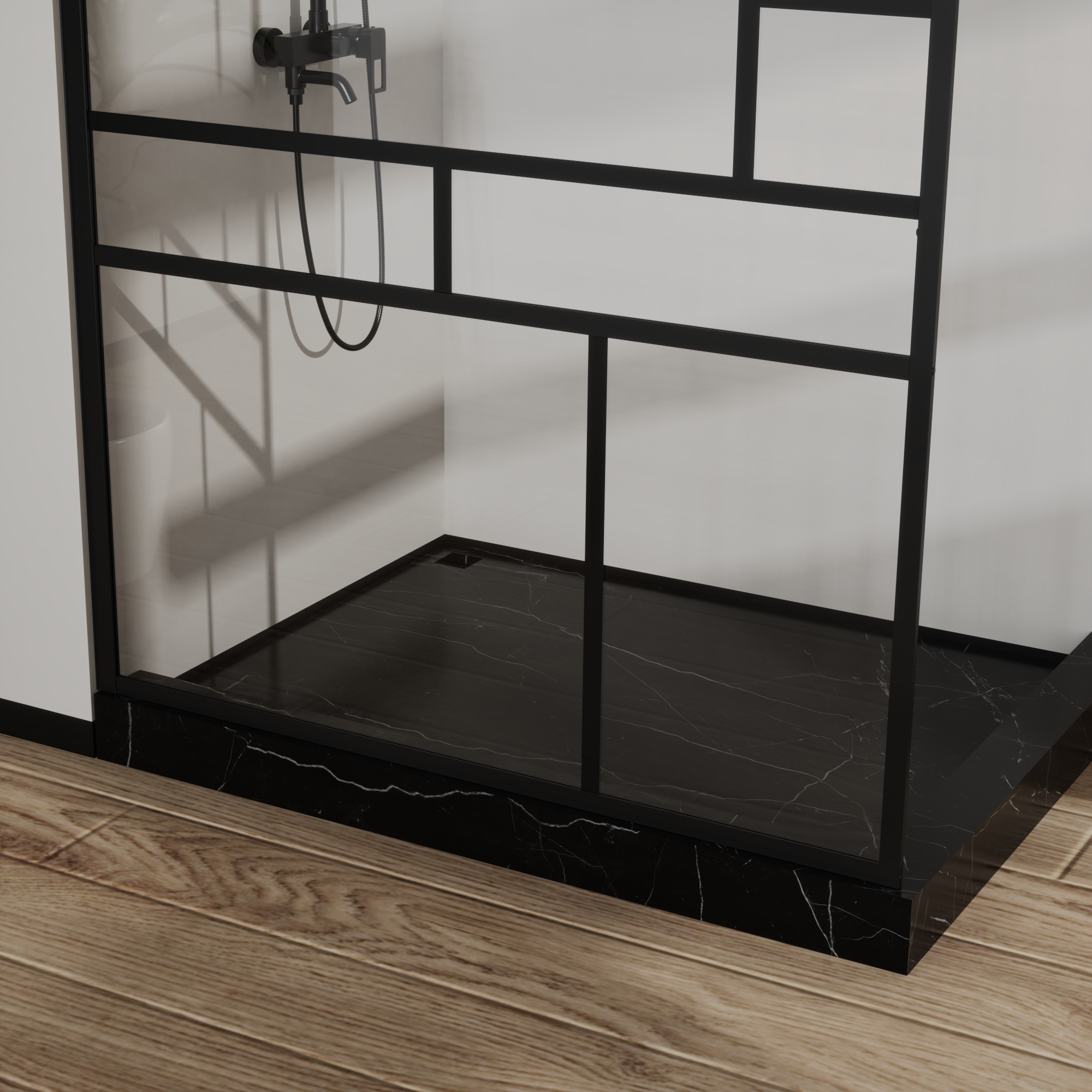 • Modern Elegant Design: The black aluminum alloy frame and stylish black grid pattern create a modern and luxurious look that complements a variety of bathroom styles, from classic to contemporary.