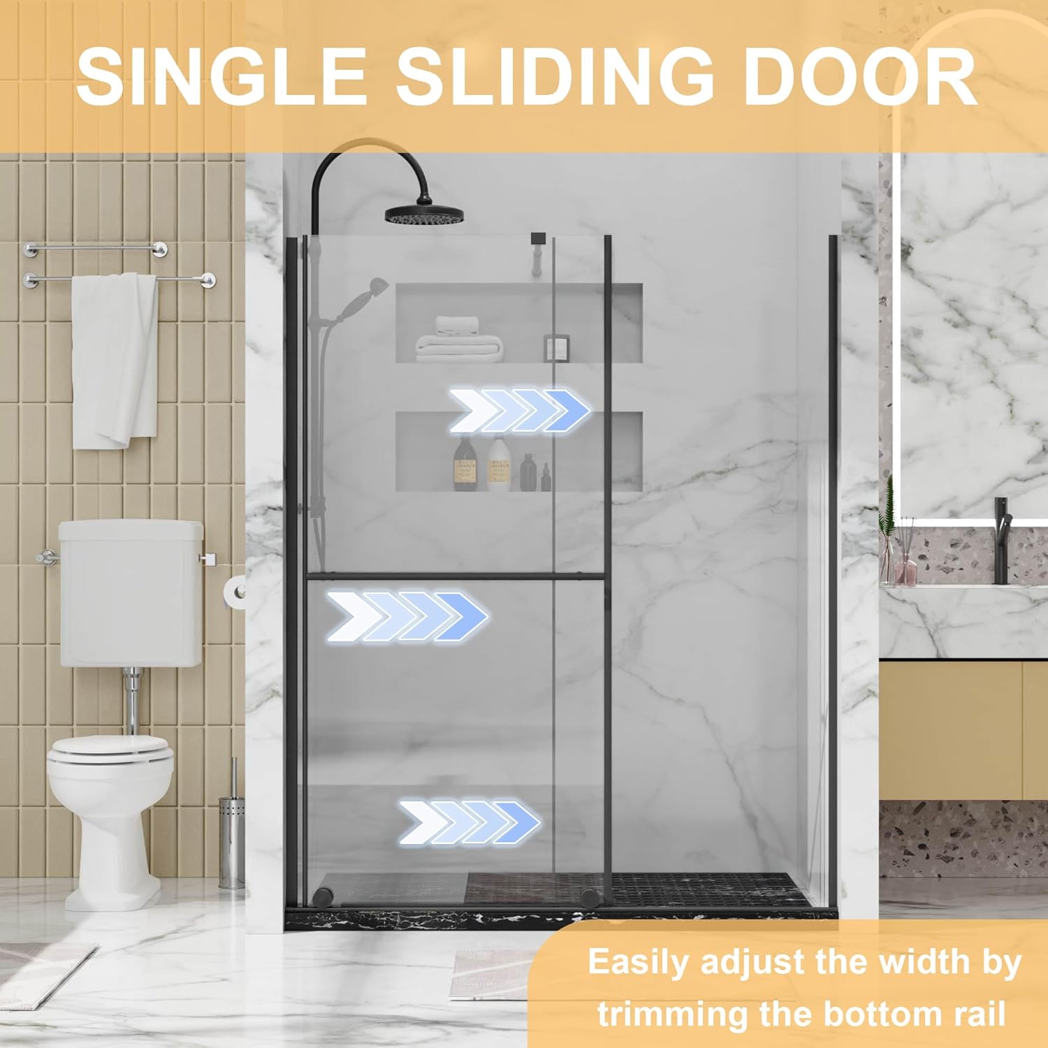 • Dimension: Assembled size is 60” x 72”, the width can be adjusted from 30" to 60", transforming the walk-in shower screen to a sliding door. The shower door is designed for dual usages to fit perfectly in various shower spaces. You can DIY your door whenever you want.