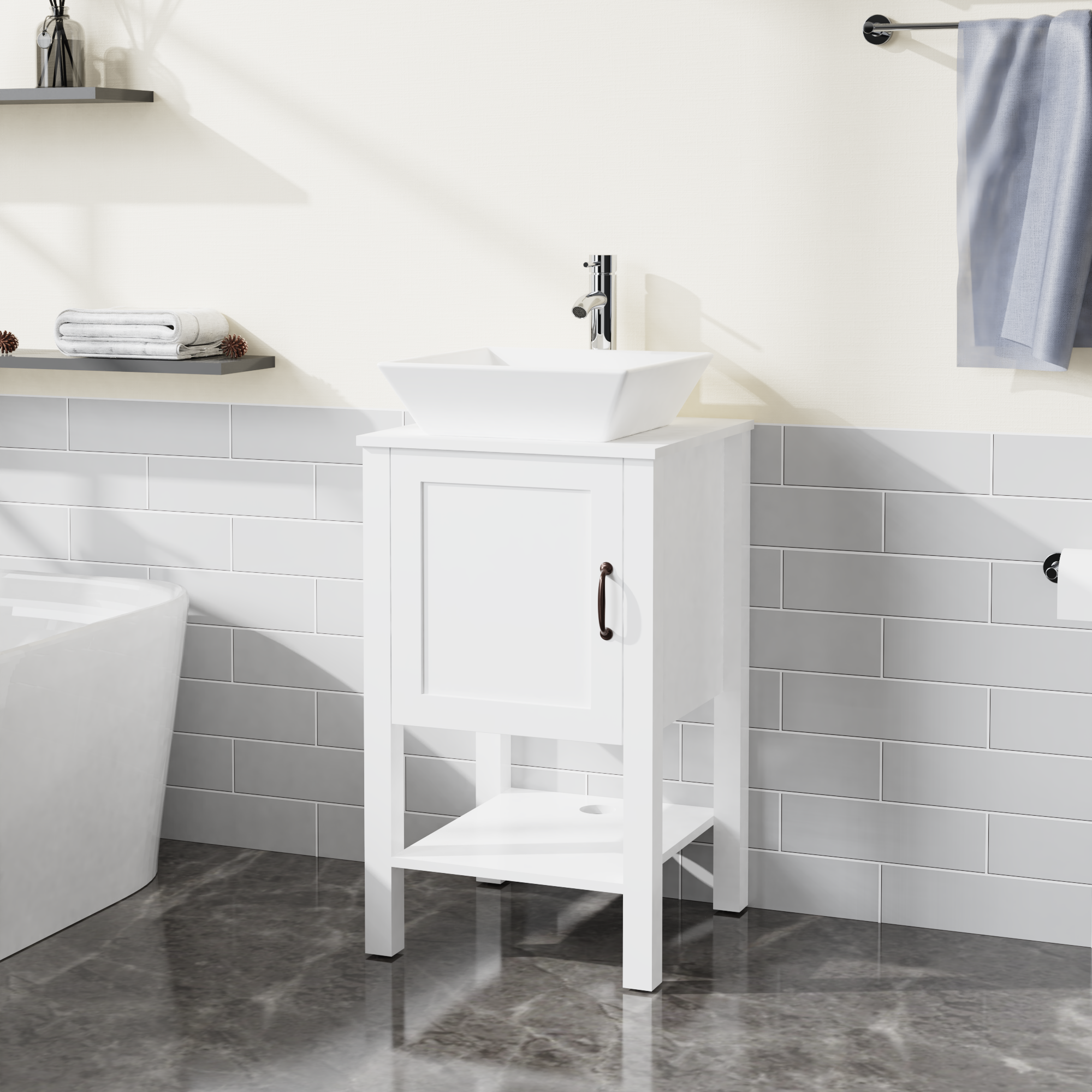 Goodyo® 18” White Bathroom Vanity with Vessel Sink Top Combo